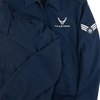 These ones have a sleeveless, vest-style, light polyester liner for those colder moments. The liner attaches with hook & loop and will keep your torso toasty. These jackets have ribbed cuffs and bottom hem, much in bomber jacket style but without the sheen and with a fold down collar. Some of these jackets have no embroidery or patches, some of them do.