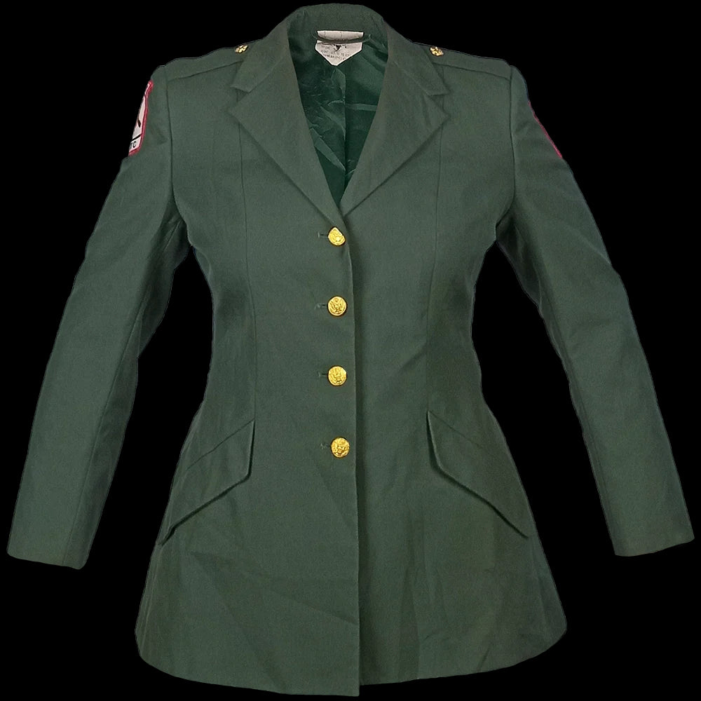A classic piece of the U.S. Army Green Service Uniform (AGSU), tailored specifically for women. These high-quality, well-fitted jackets are a great addition to any collection. Some are officer versions and may include black armbands near the cuffs.