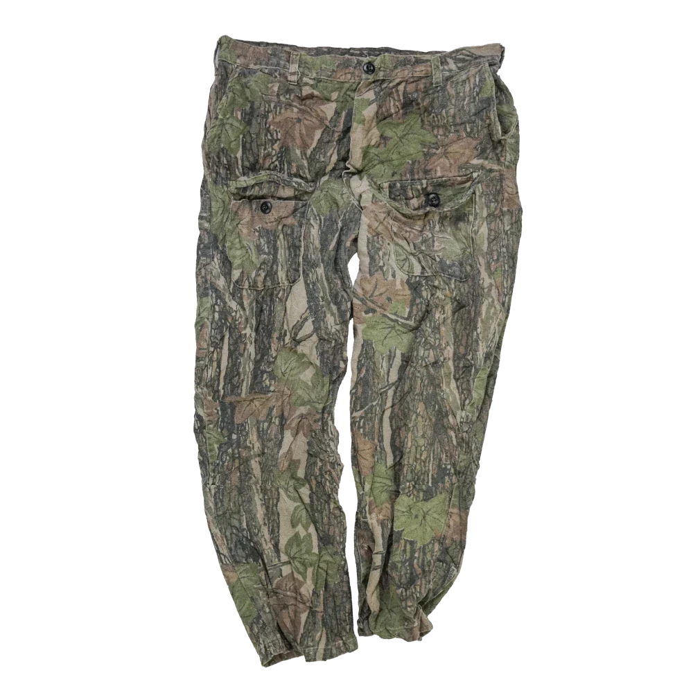 US-made Ocoee hunting camouflage trousers in size 38. These trousers feature a camouflage patterned fabric and standard full-length trouser construction.