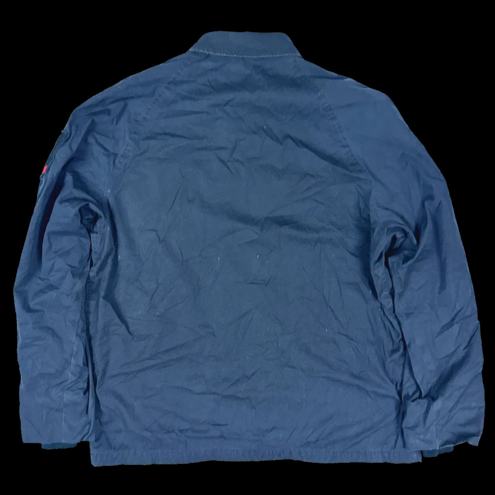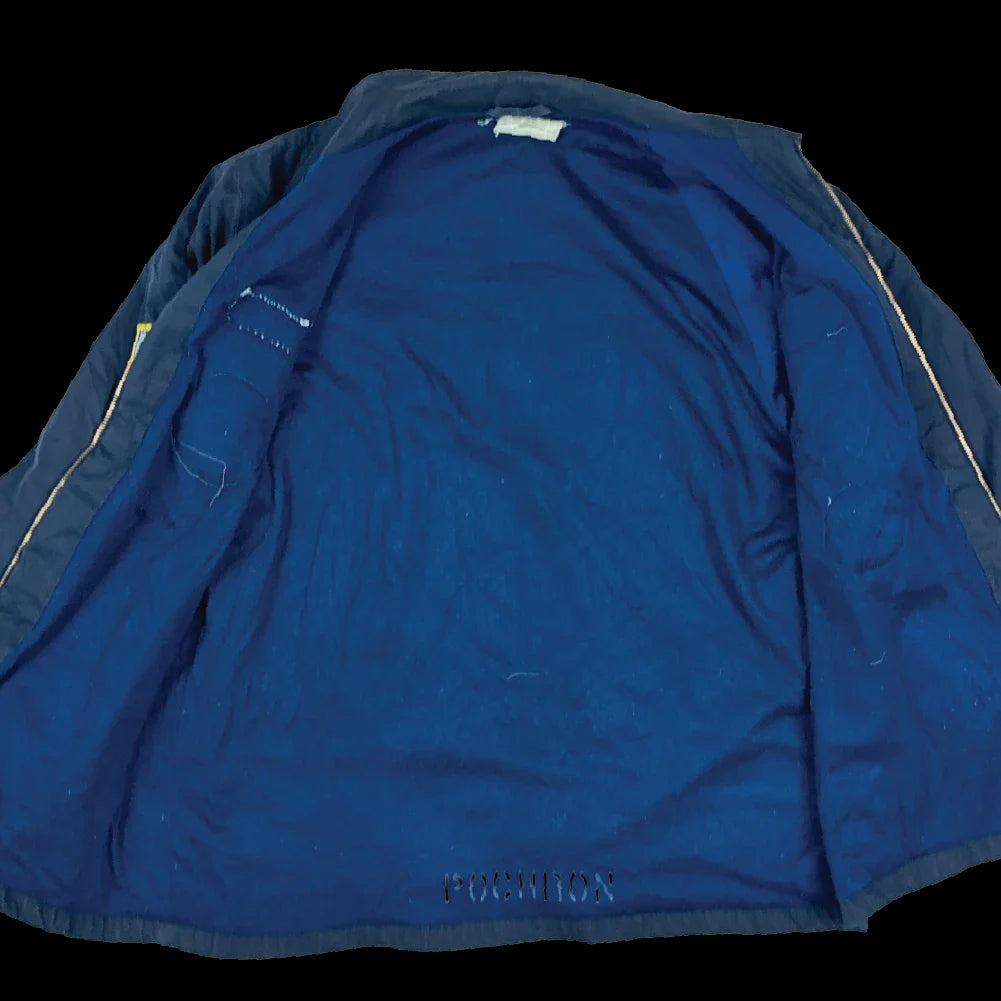 Surplus US Navy utility deck jacket in standard issue style. Features a zip-front closure, two zippered chest pockets, and two hip pockets, with elasticated internal wool cuffs.