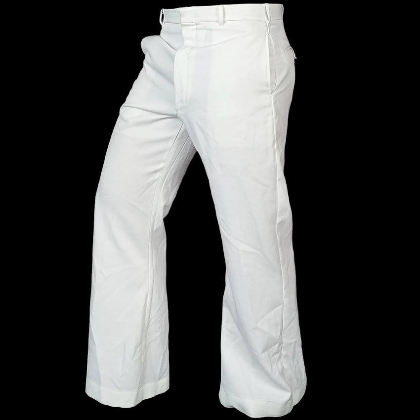 US Navy Service Dress White's or disco time, these white trousers do the trick. The US Navy Enlisted Dress White ''Jumper Trousers'' are classic, high-waisted uniform pants made from durable, crisp white fabric. Featuring a bell-bottom design and tailored fit, they offer a sharp, professional appearance for summer or formal US naval occasions.