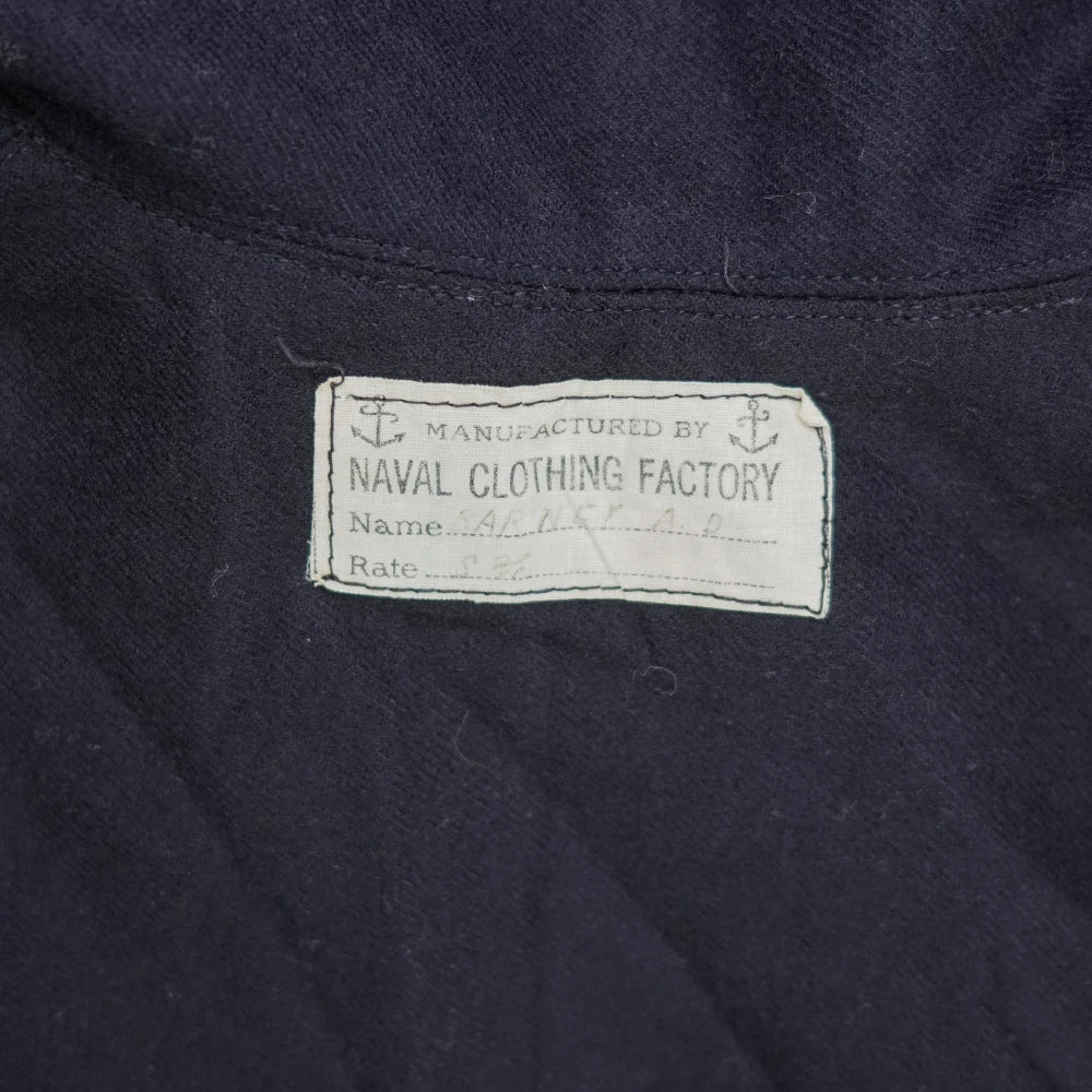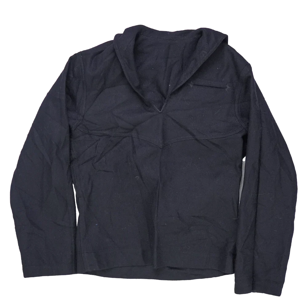 US Navy wool sailor middy shirt in a traditional naval pullover style. Constructed from wool with long sleeves and the classic middy shirt pattern associated with US Navy dress uniforms.