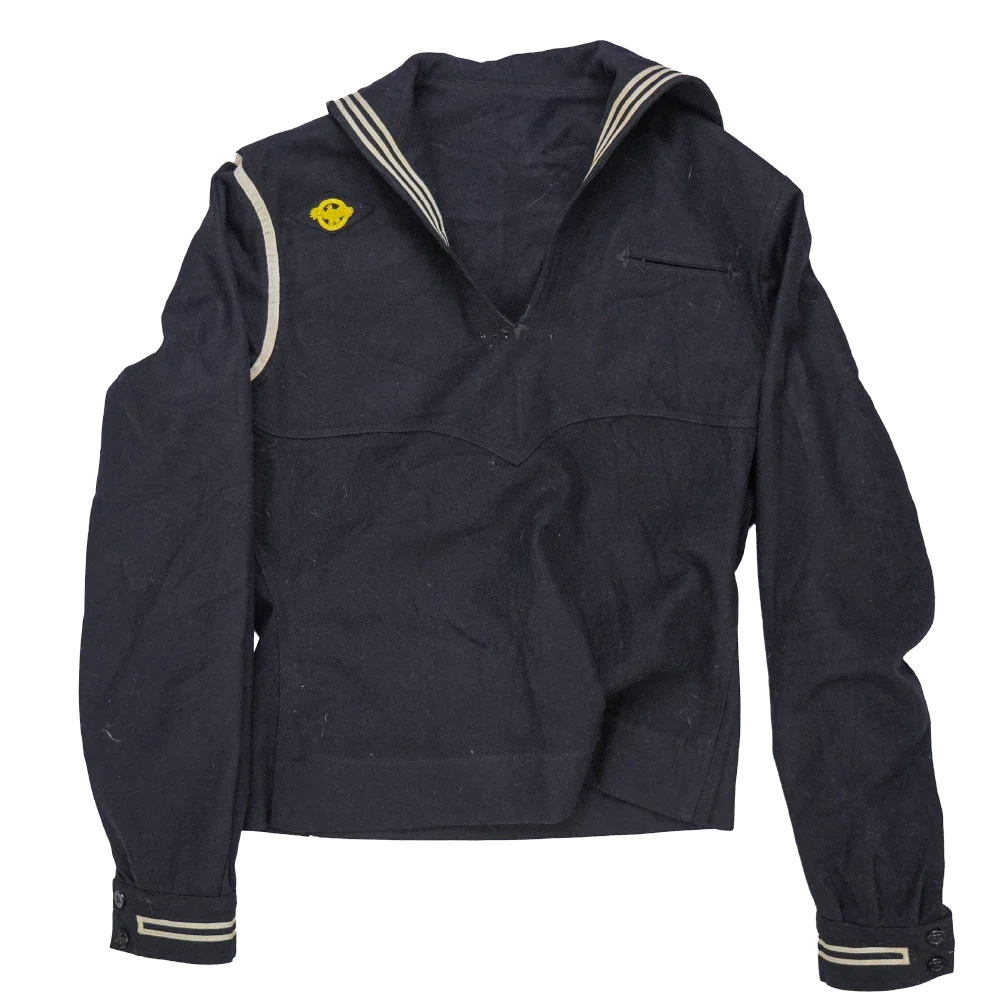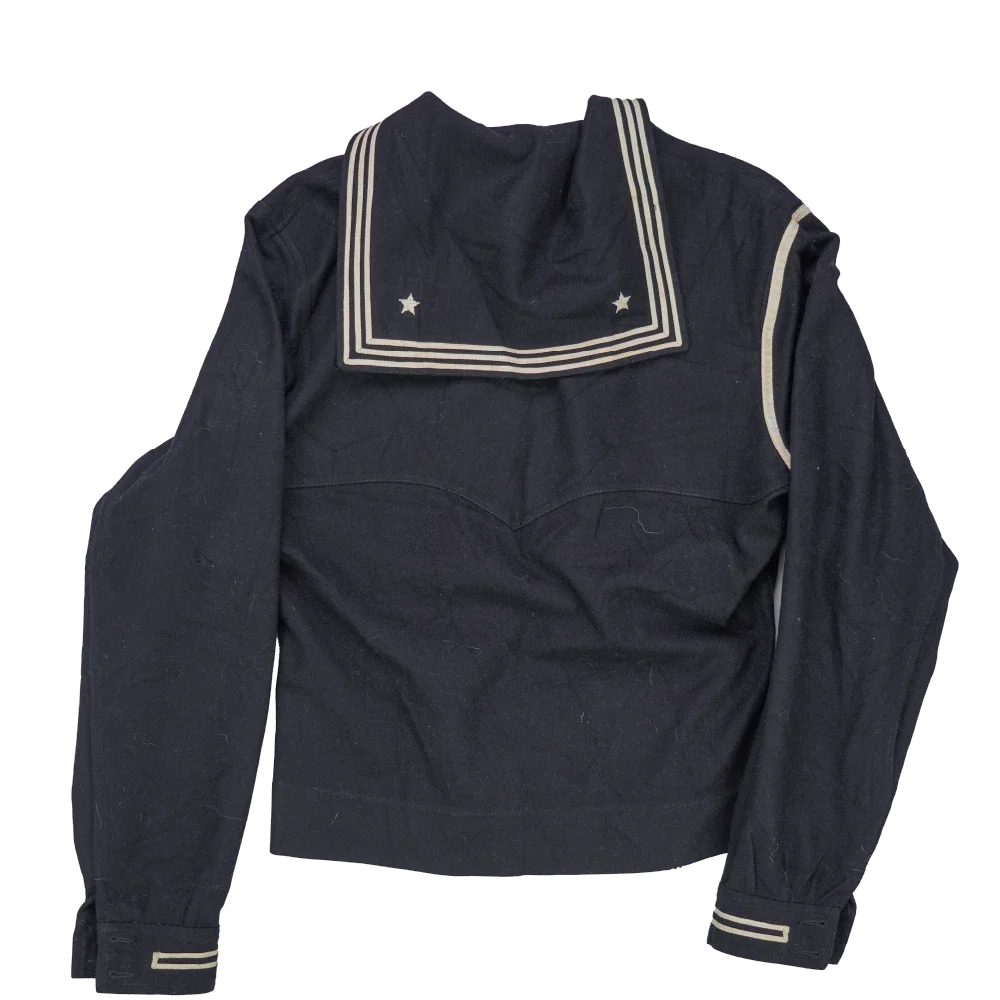US Navy WW2 wool sailor middy shirt. Traditional naval pullover shirt with wool construction and a middy-style sailor collar.