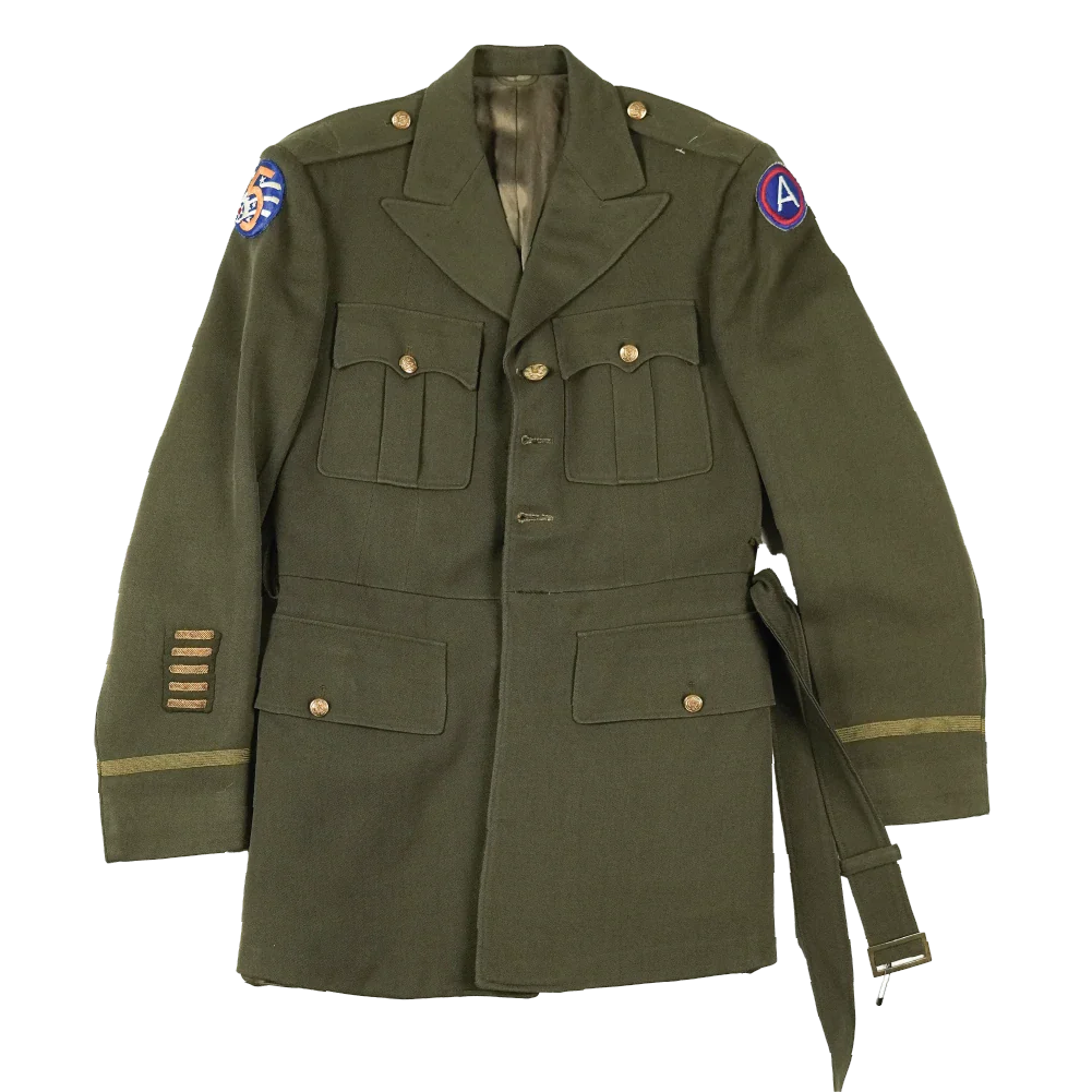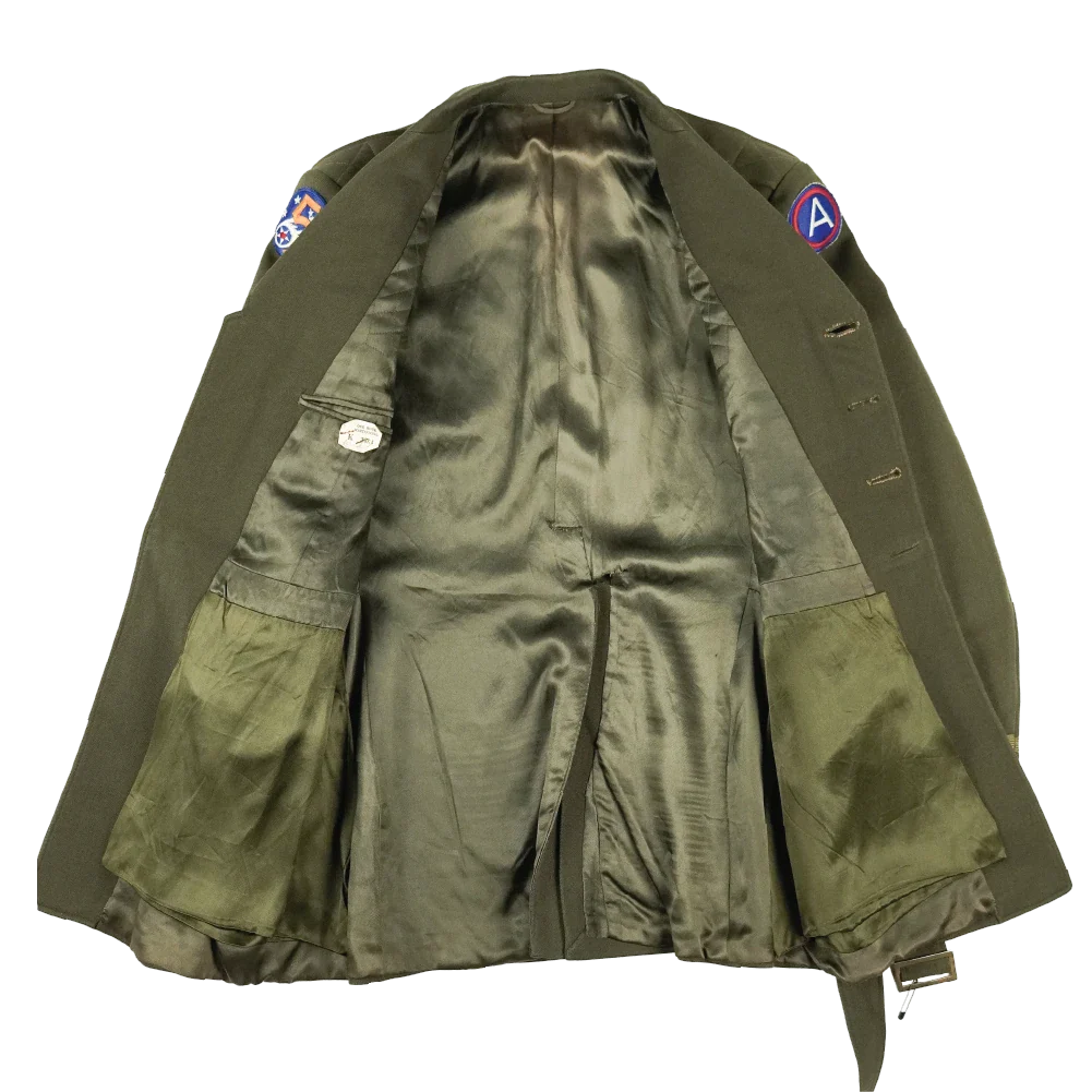 USAAF World War II Class A service dress jacket. This example features period-applied unit insignia and overseas service bars.