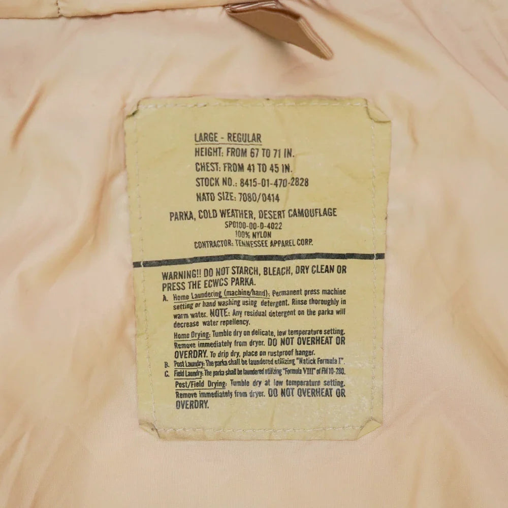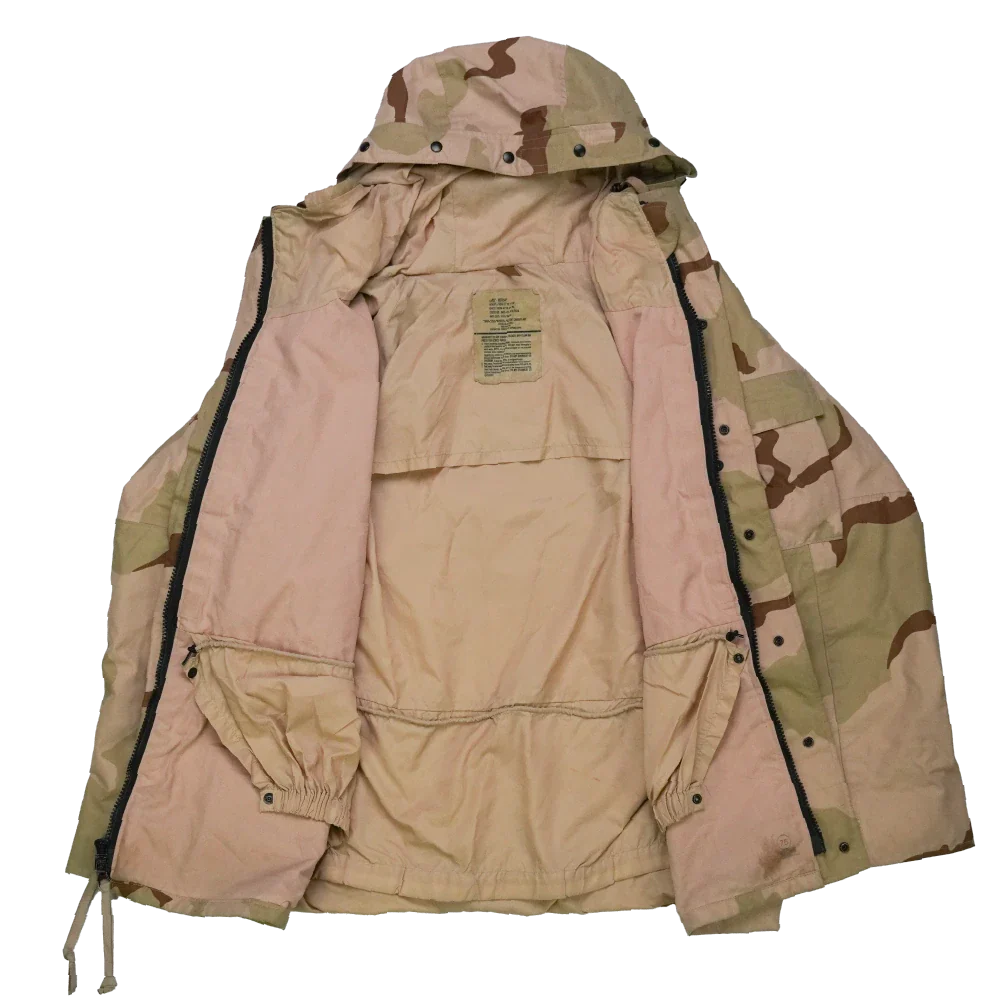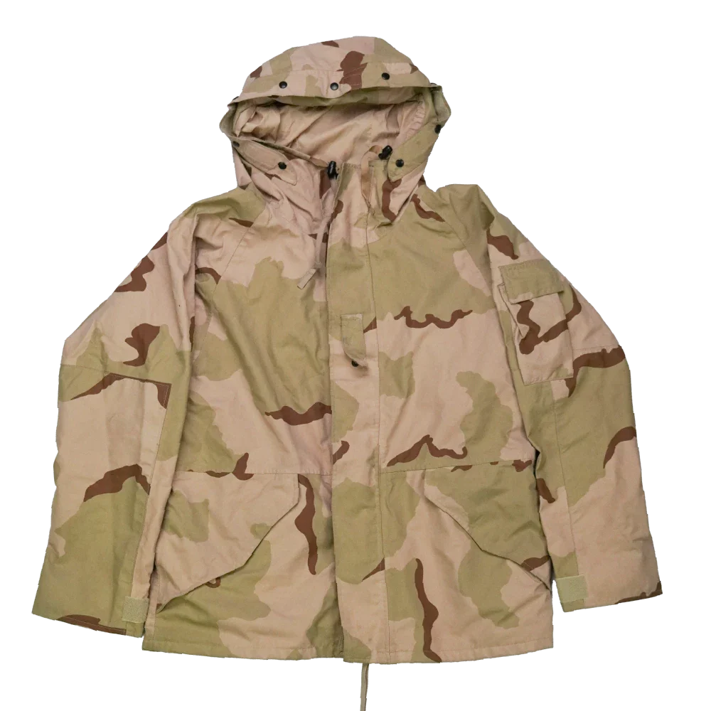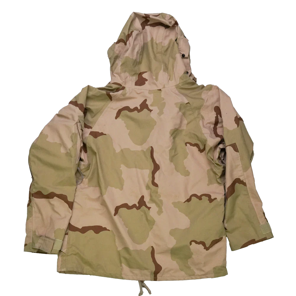 USGI 3 Colour Desert Gore-Tex jacket in Large Regular. Constructed with a Gore-Tex waterproof membrane and finished in the 3 Colour Desert camouflage pattern.