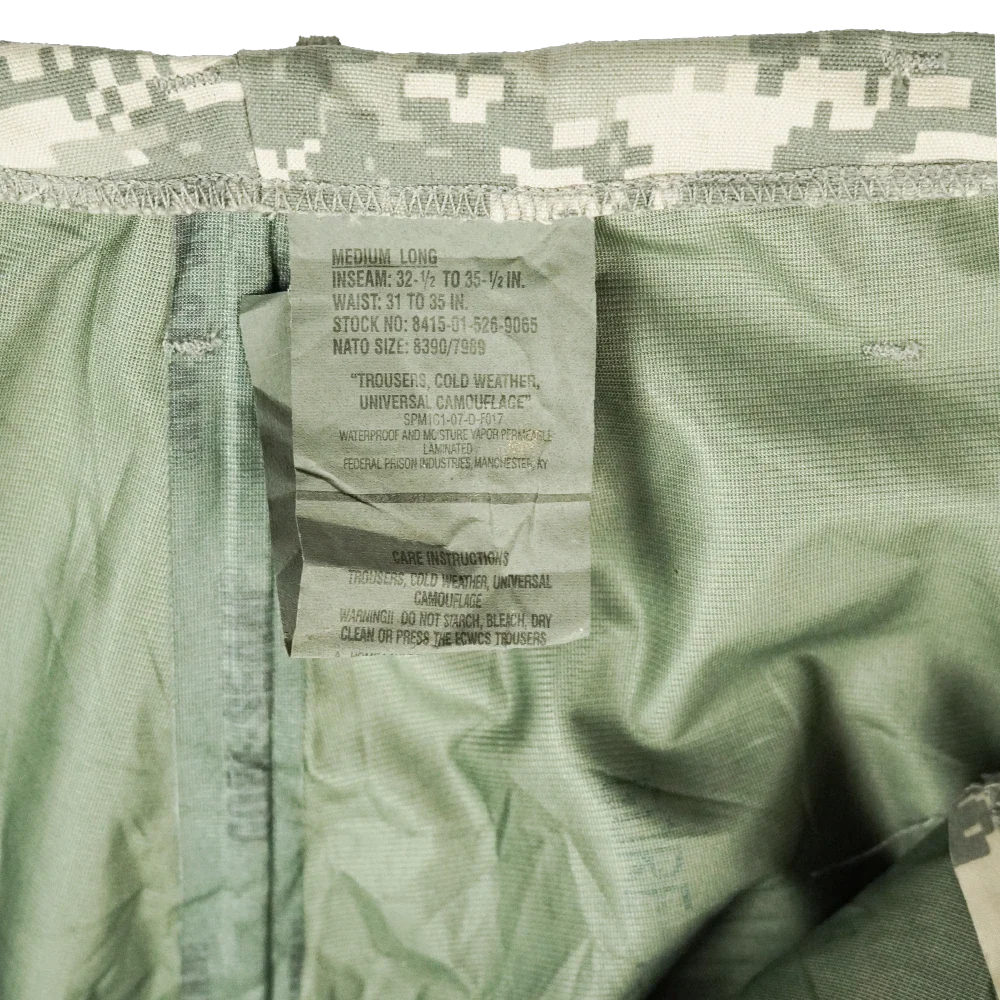 USGI Gore-Tex trousers in surplus condition. Marked Medium Long sizing with Gore-Tex fabric construction. Manufacture date is 2007.