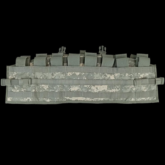 The main guts of these things is the 8 magazine array and a large MOLLE platform for you to add extra pouches as you see fit. Outer mag pouches each side have extra wiggle room and are designed for M14 or DAGR (Defense Advanced GPS Receiver). A durable Cordura nylon fabric make load bearing a breeze and you don't have to worry about any moisture weighing you down excessively.