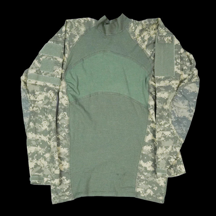 USGI ACU UBAC shirt in Medium size. Manufactured in 2008 by Massif. The design combines a moisture-wicking torso section with durable sleeves for compatibility with body armour and load-bearing equipment.