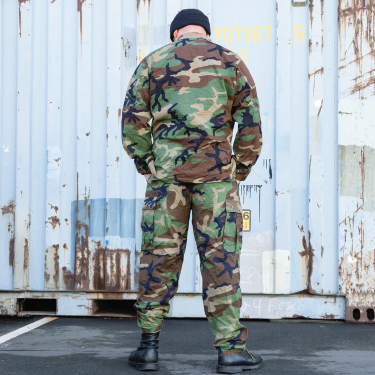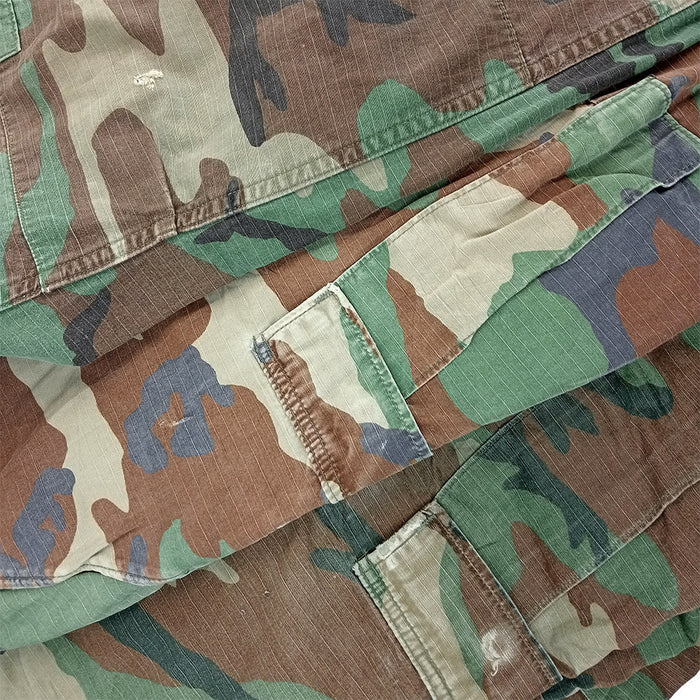 U.S. Army genuine issue woodland camouflage BDU pants in rip-stop fabric. These are most likely dated from the 1990's to 2000's. The BDU (Battle Dress Uniform) design was instigated by the U.S. Army in the 1980's and became a popular style among civilians as well. A high quality and rugged construction has ensured a long lifetime of use and these Grade 2 items still have some wear.