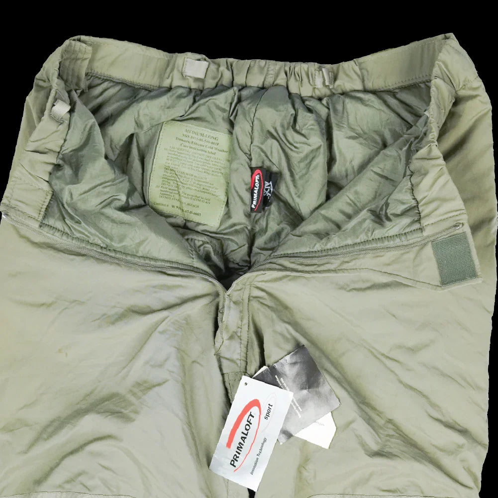 USGI ECWCS Gen III Level 7 insulated trousers. Part of the Extreme Cold Weather Clothing System, designed as an insulated outer layer.