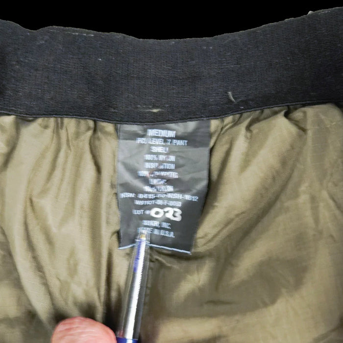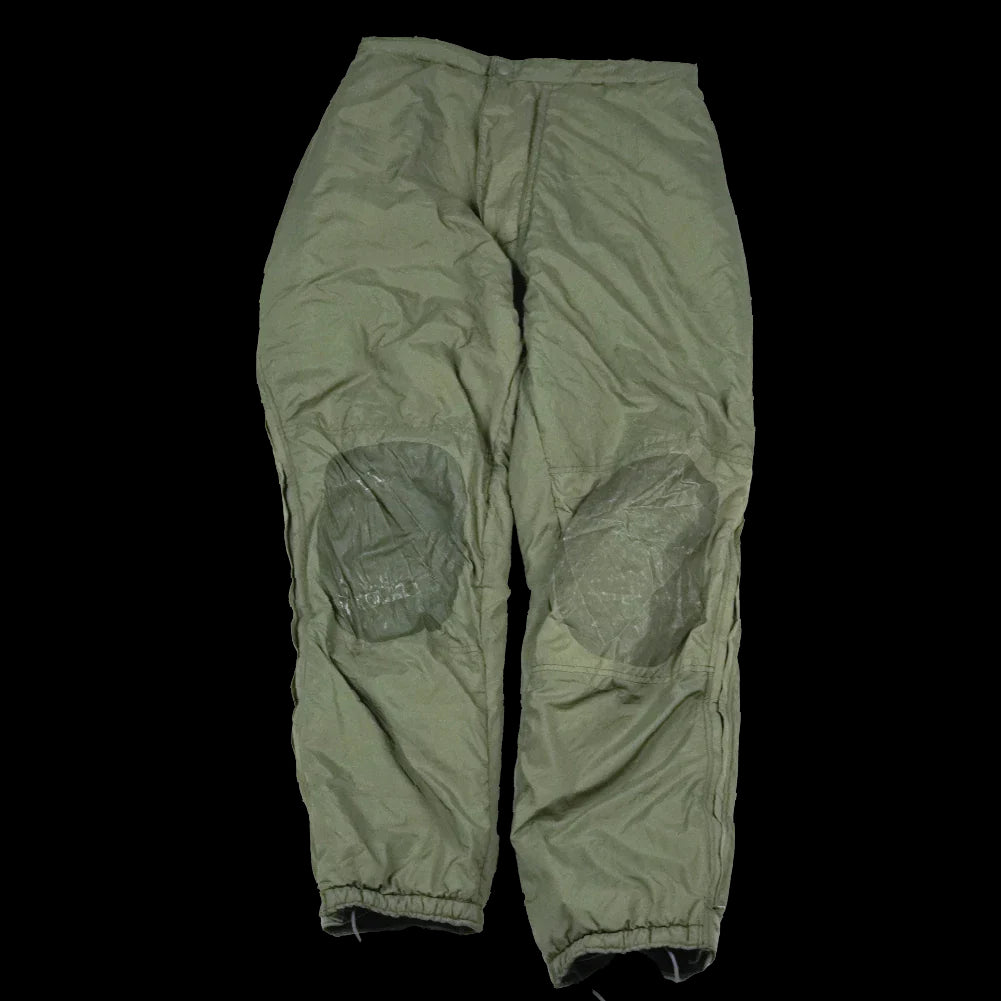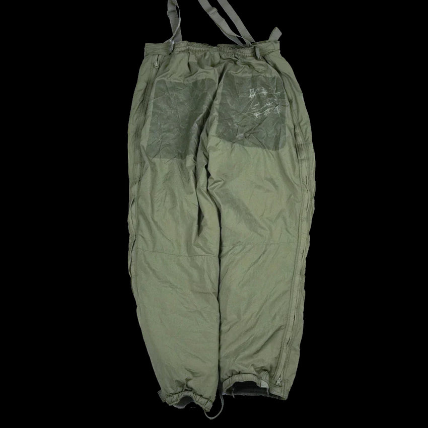 USGI ECWCS PCU Level 7 insulated trousers. This is a cold weather over-trouser designed as part of the PCU system. Manufactured in 2006 by Sekri, Inc.
