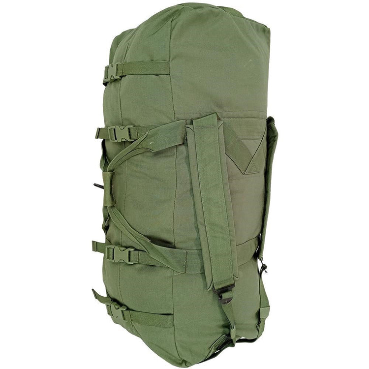 These enhanced duffel bags were introduced into US military service in 2013 and are still currently issued. Compared to previous duffel bags, these ones have a lot more features to secure the contents for travel.