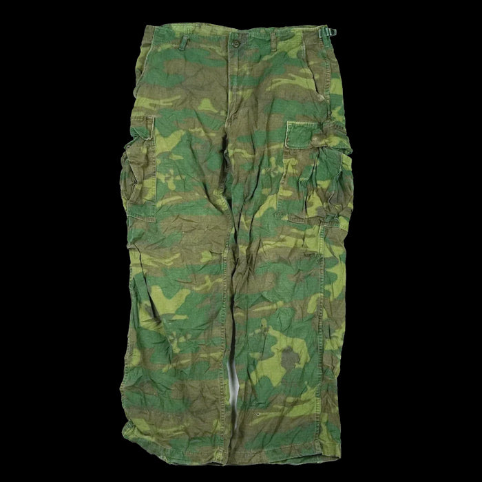 The 6th pattern was the final iteration of the jungle fatigue trousers and was produced in ERDL camouflage with a zipper fly instead of buttons. Manufacture date is 1970, and the pattern was worn during the Vietnam War, including by USMC personnel and some New Zealand and Australian SAS forces in South East Asia.