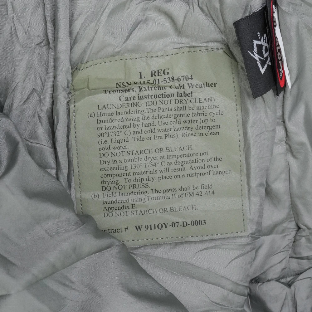USGI GEN III Level 7 ECWCS trousers in Large Regular sizing. This is a military surplus trouser with a plain functional design and full-length leg cut.