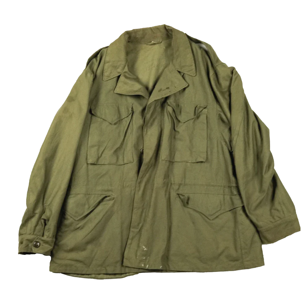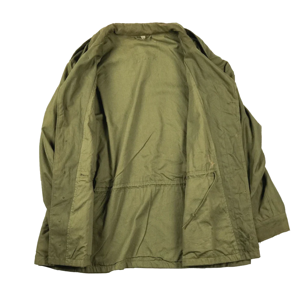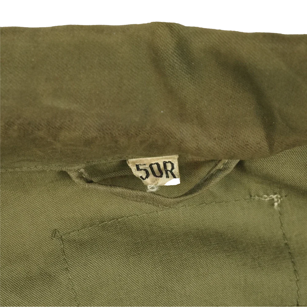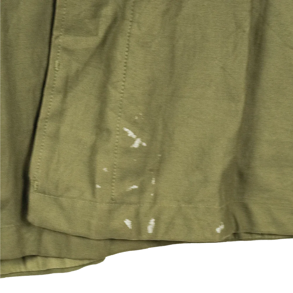 There is a small bit of white paint on the lower front, fraying on the right cuff, and small stains on the upper back. Brought in to replace the earlier M-1941 field jacket, this model set the precedent for all future field jackets used by the US armed forces and many other militaries over the world. The M-1943 saw service in the latest stages of World War 2, and into the 1950s during the Korean War.
