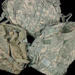 Grandmas couch camo (UCP) assault pack! These ones have had their fair share of getting stuff done and have subsequently lost some straps, gained some holes or misplaced some components.
