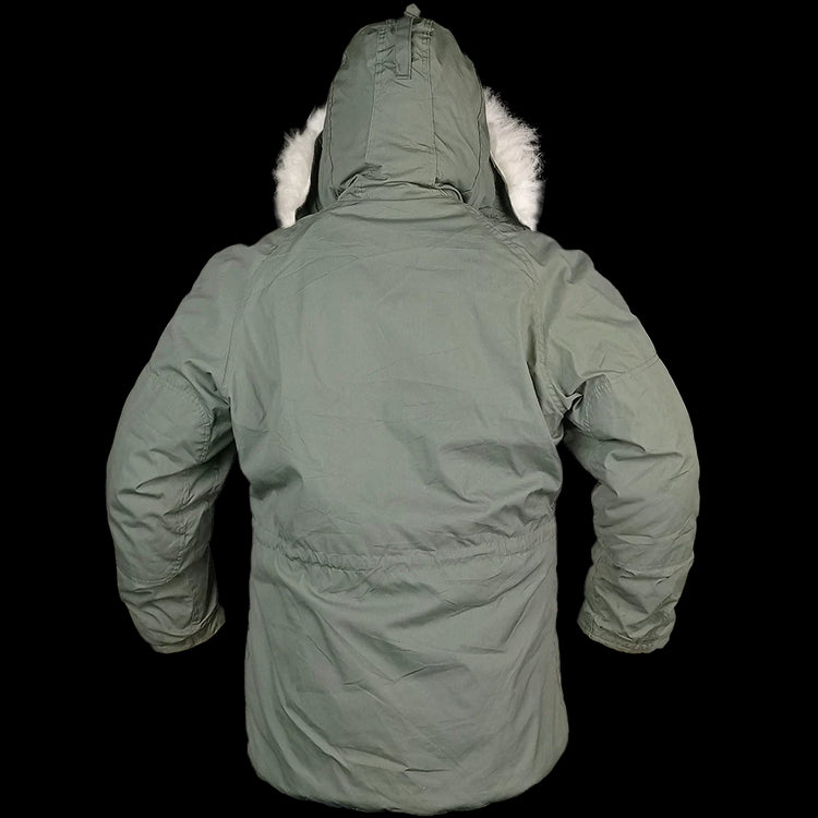 Originally issued to aircrew in the 1950s, its heavy-duty nylon shell, warm insulation and classic trimmed hood made it a symbol of rugged military endurance. These surplus jackets are in fair, service-worn condition, showing signs of real history - small holes, missing buttons, or light stains, adding genuine character to every piece. Perfect for those out in the freezing cold, collectors, vintage enthusiasts or anyone who appreciates authentic military gear built to last.