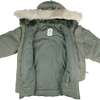 Own a piece of Cold War history for a bargain price! These authentic U.S. Air Force N-3B “Snorkel” Parkas have done the hard yards, but they will still keep you warm! Some of these may have larger stains, small holes, missing buttons or damaged interiors. The photographed example of a damaged interior is particularly bad but the rest of the jacket is wicked! Anyone after a cost effective extreme cold weather jacket should definitely consider one of these.