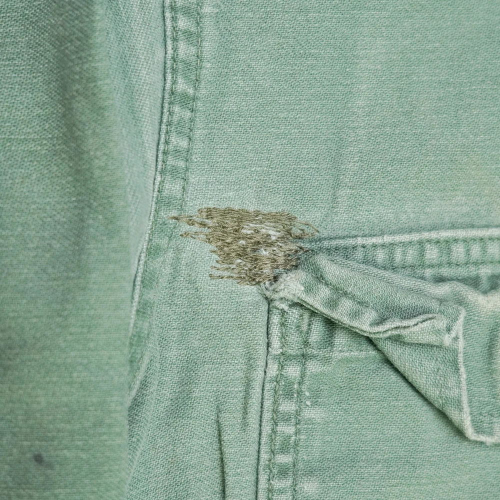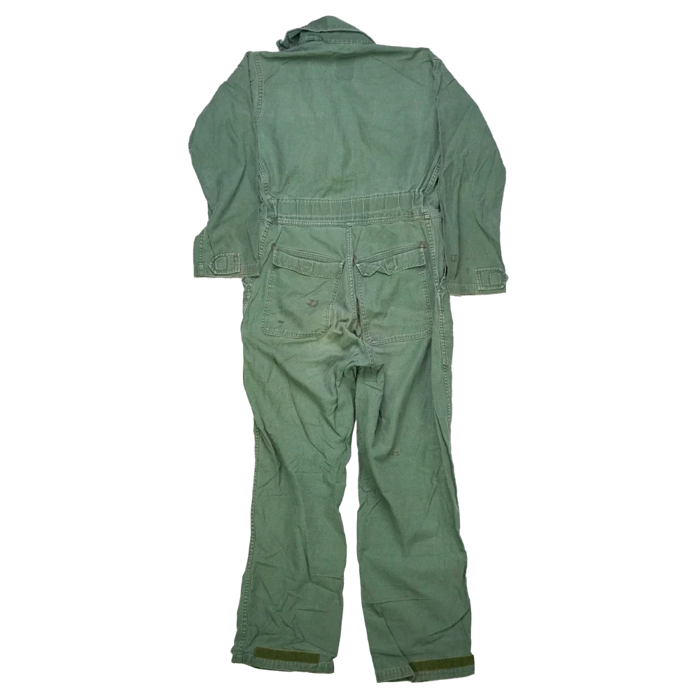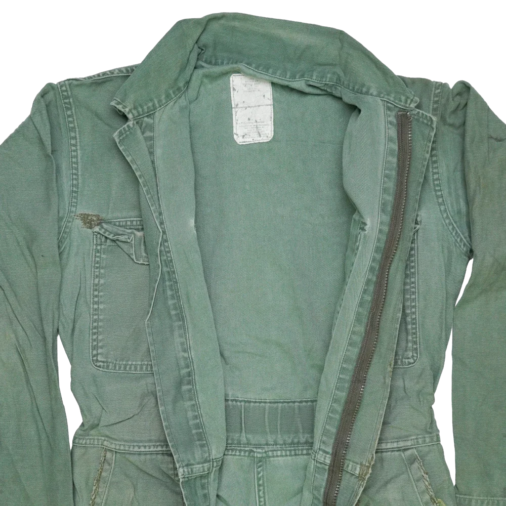 USGI olive drab utility coveralls in used/fair condition. One-piece construction with full body coverage in a plain olive drab finish.