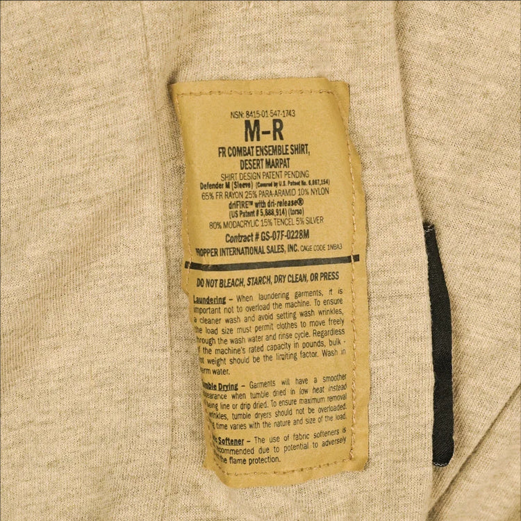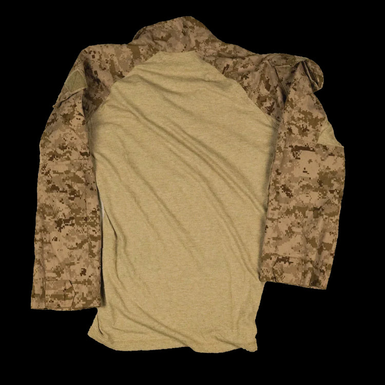 USMC FROG combat shirt in Desert MARPAT camouflage. This is a Medium-Regular size with a fitted cut typical of combat shirts.