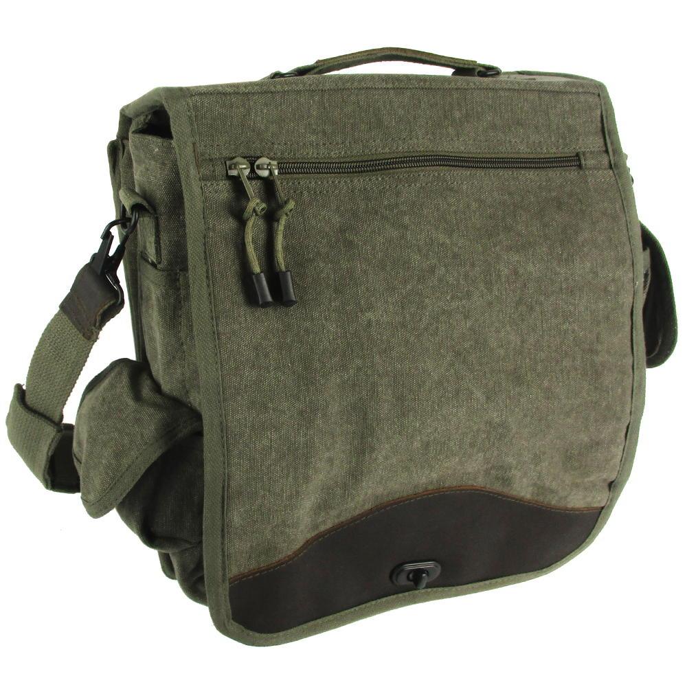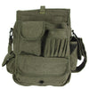 Rothco's M-51 engineer's shoulder bag combines a vintage military look and feel with features for a busy modern life. Constructed from a rugged cotton canvas with leather accents and brass hardware. Sling it over your shoulder or carry it by the top handle on your way to work, school or while traveling.