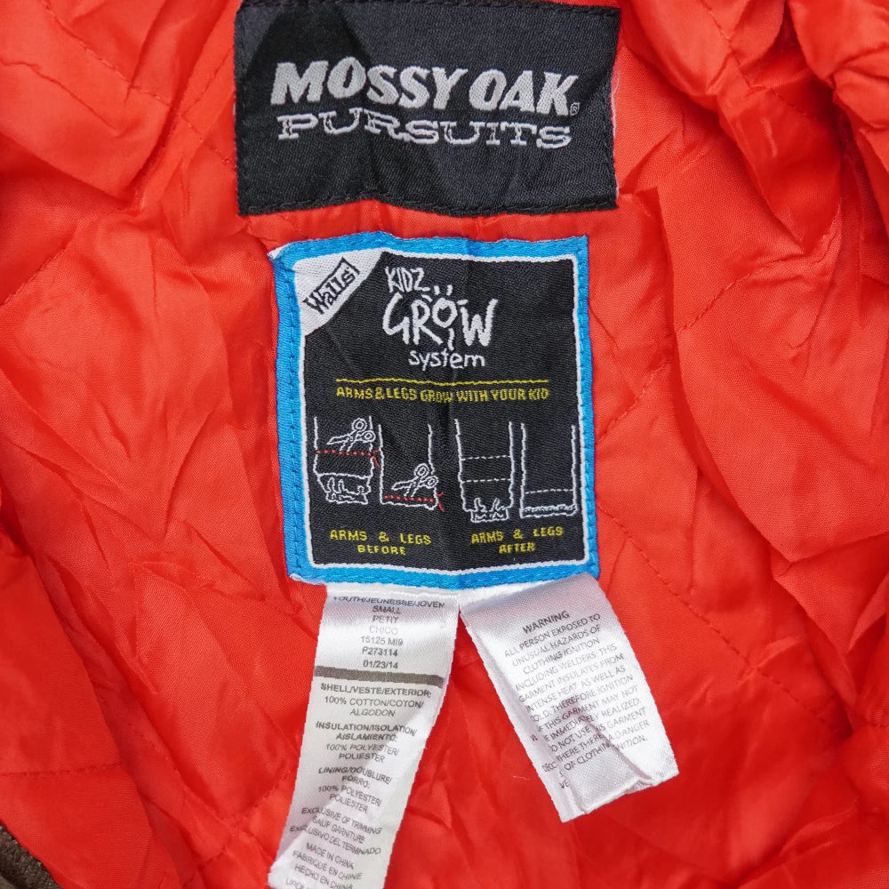 Walls Mossy Oak Pursuits kids camo coveralls in Youth Small. Features the Mossy Oak Pursuits camouflage pattern in a full-length coverall design.