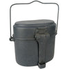 The mess kit breaks down into 2 parts. The bottom part is a much deeper bowl ideal for boiling broths and a wire handle that can be hung up. And the lid has a convenient carrying handle that folds out so you can hold onto it without burning your hand. All used sustenance components are display/prop/collectable only and not for consumption use.