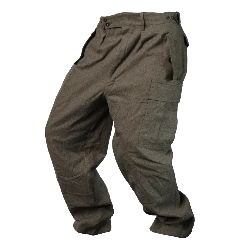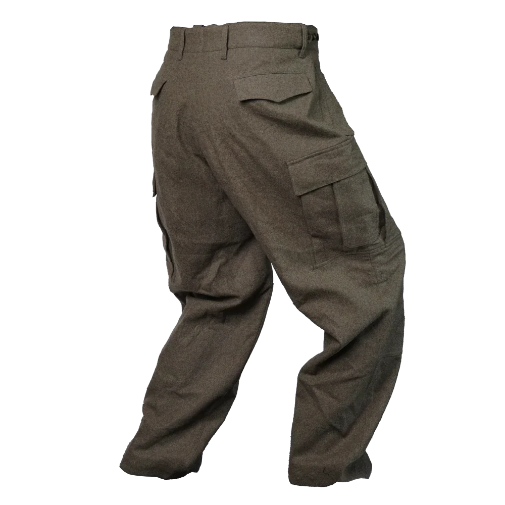 West German wool field trousers in green. Constructed from 100% wool with a traditional military field cut.