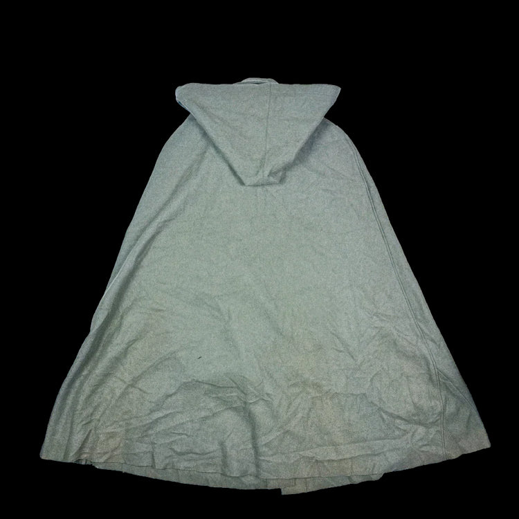 Yugoslavian JNA Mountain Troops wool cloak in size Medium. Heavy wool construction with a button front closure, arm openings at the front, and an adjustable hood. Manufacture date is 1977.