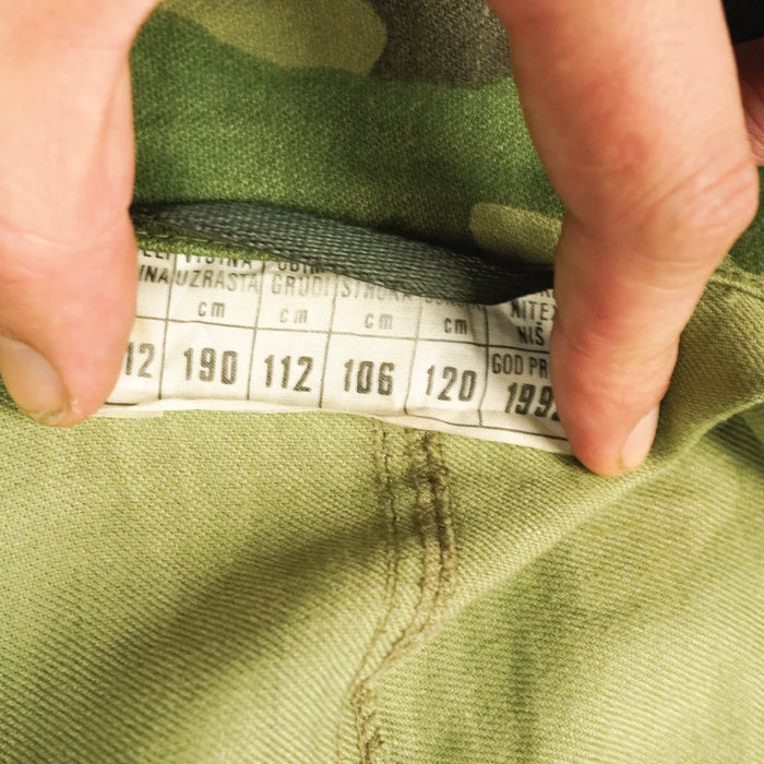 Surplus Yugoslavian M89 field jacket in oak leaf camouflage pattern. Standard field jacket construction with full-length front closure and multiple cargo-style pockets.